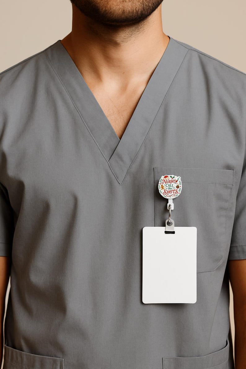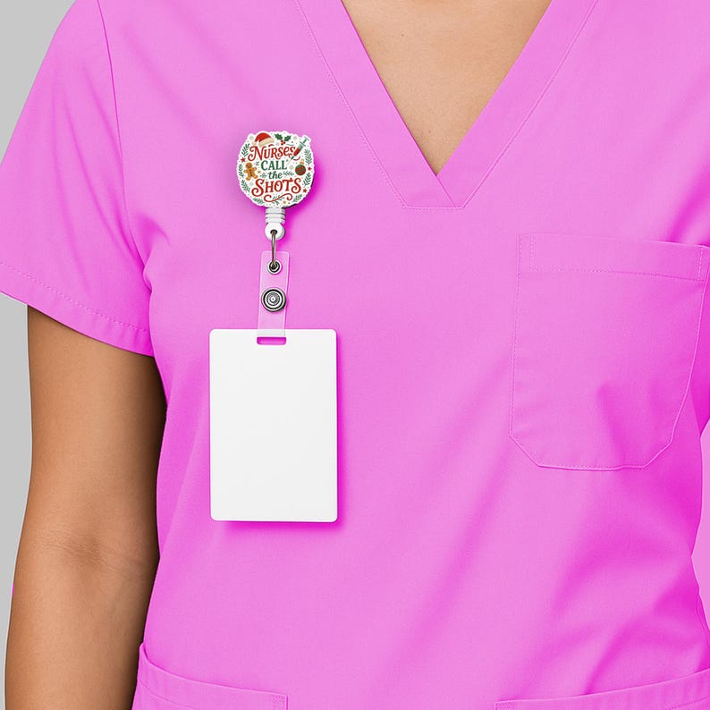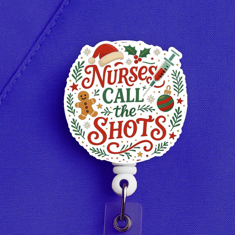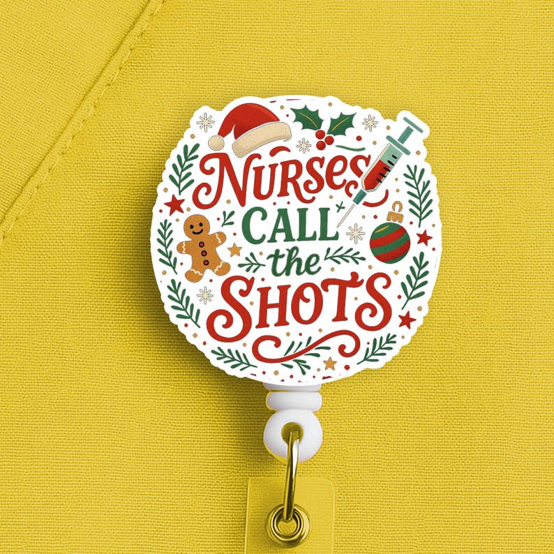• Own the holidays *and* the medication schedule. This “Nurses Call the Shots” Christmas badge reel is the perfect mix of festive flair and professional truth. With holiday graphics, a cheeky syringe, and enough seasonal charm to distract from the fact that your entire unit is held together by caffeine and sheer will, it keeps your ID secure while delivering a dose of personality.