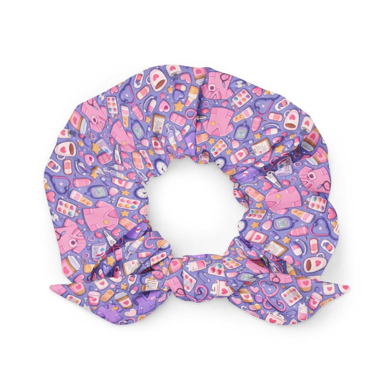 Be the first to review “Cute Nurse Pattern for RN CNA Medical Hearts Coffee Coquette Healthcare Worker Recycled Scrunchie”