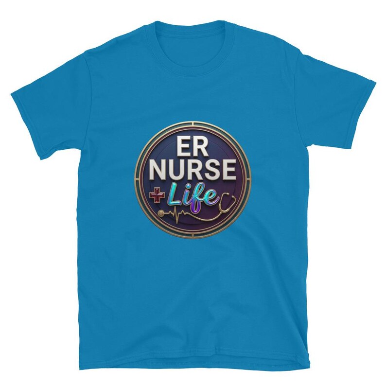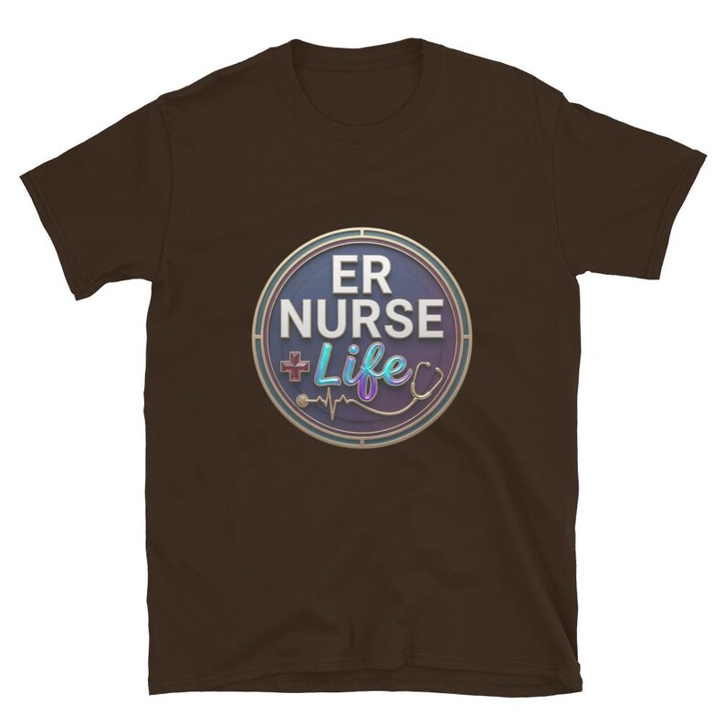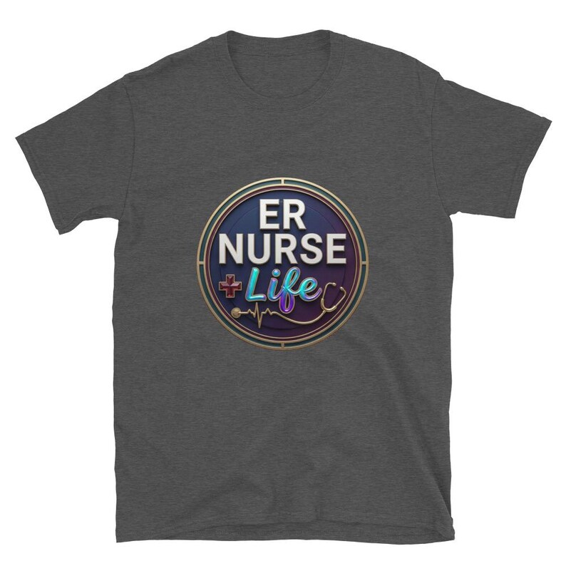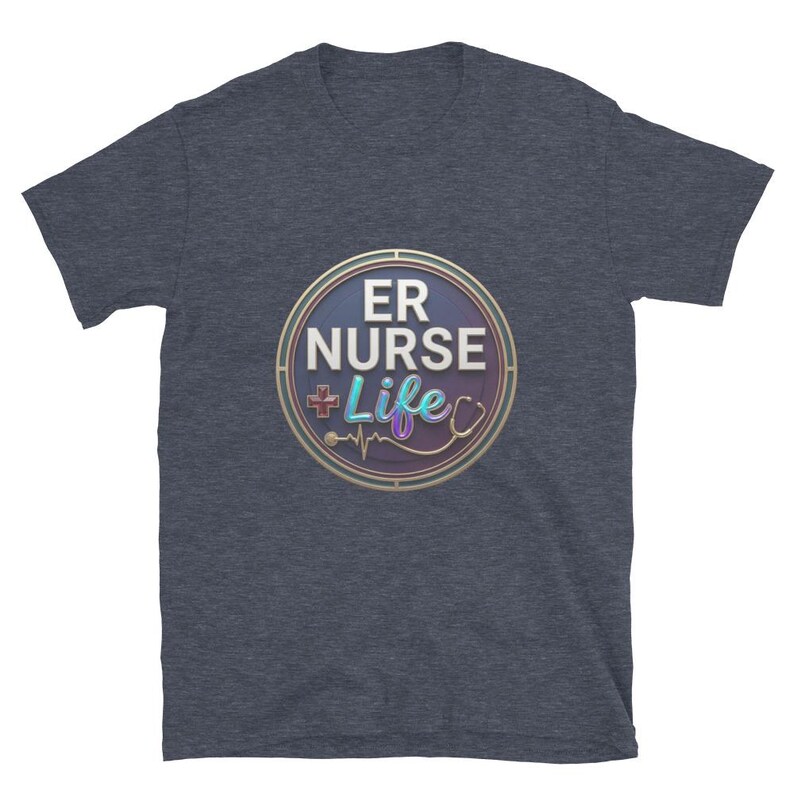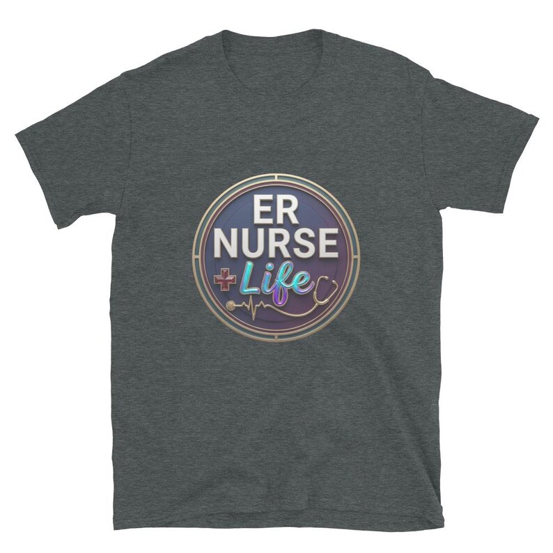 This ER nurse shirt features the phrase “ER Nurse Life” in a bold, polished design made for emergency room nurses, RNs, ER staff, trauma nurses, and healthcare workers who live in the world of alarms, chaos, quick judgment, and zero boring shifts.