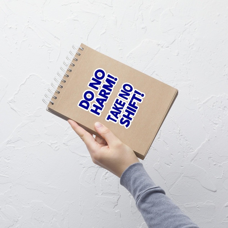 This funny nurse sticker features the phrase “Do No Harm! Take No Shift!” in a bold, no-nonsense design made for nurses, RNs, LPNs, CNAs, techs, and healthcare workers who know the value of boundaries, recovery time, and not answering “can you come in?” texts.