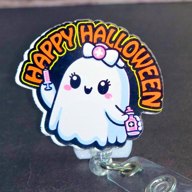 Acrylic nurse badge reel available with an alligator or belt clip.