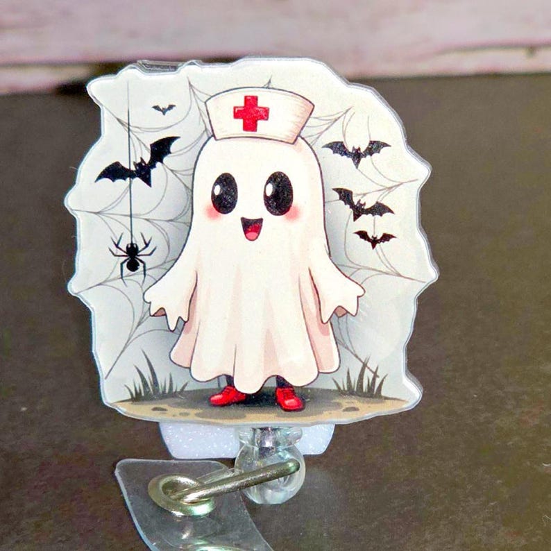 Be the first to review “Halloween Ghost Nurse Badge Reel, Bats, Acrylic”