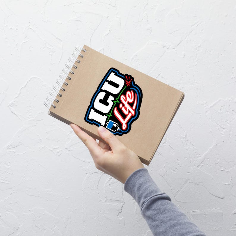 This artwork features strong ICU Life lettering with an IV bag detail, ECG line, and high contrast badge style layout that reads instantly. It has a clean, punchy look that feels more like real unit pride than the usual watered down nurse gift fluff.
