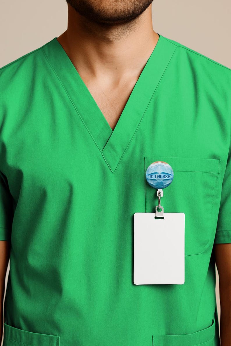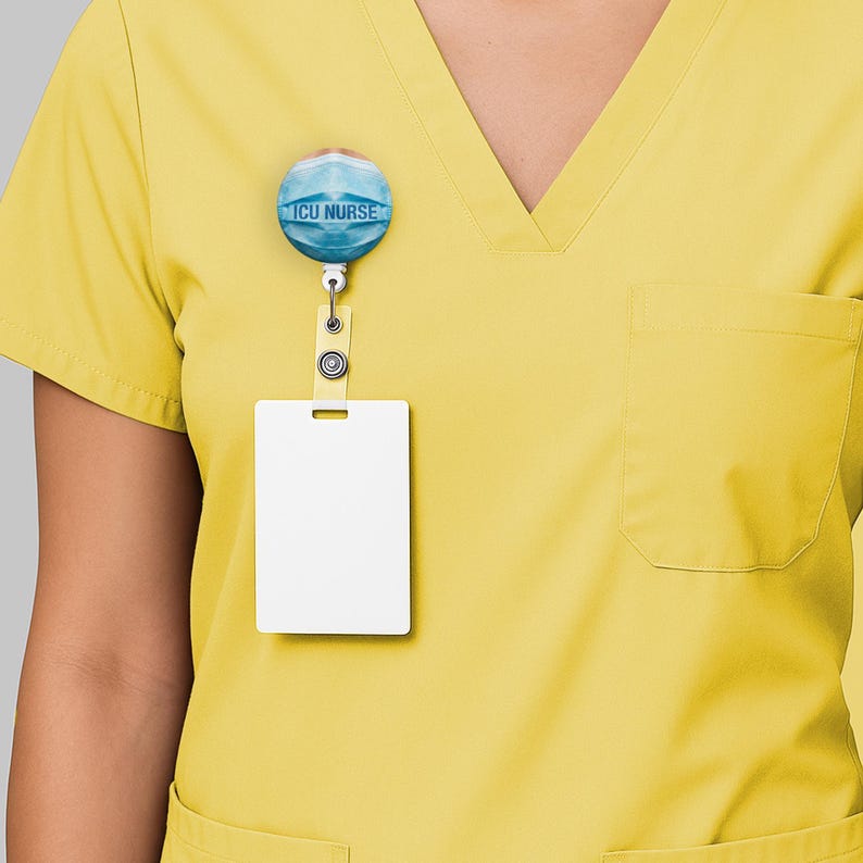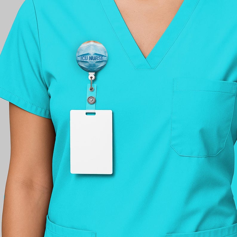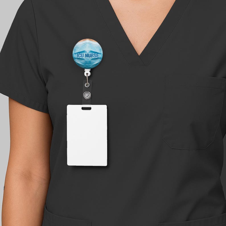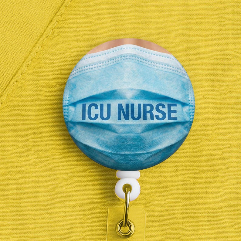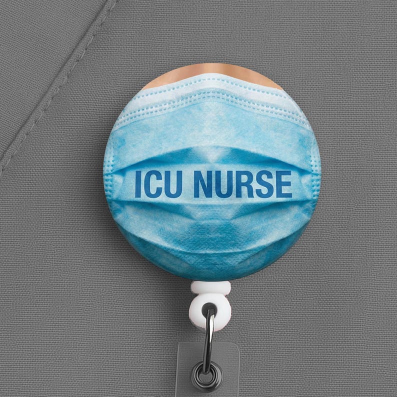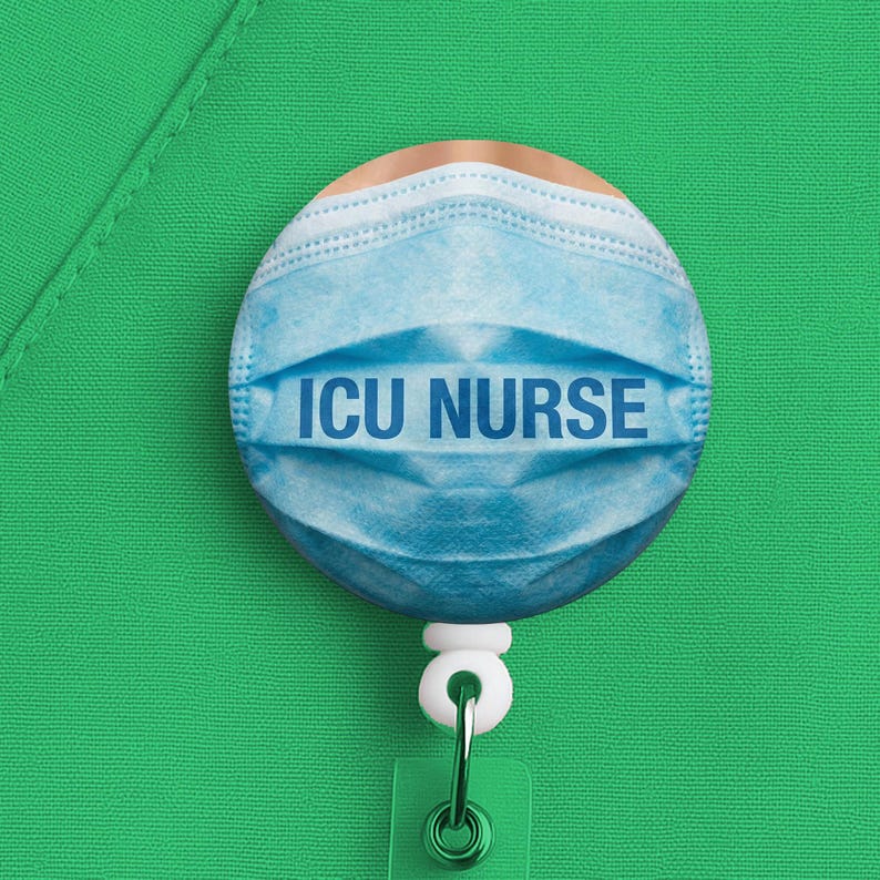 This uniquely designed badge reel features a realistic print of the iconic blue surgical mask, stamped boldly with “ICU NURSE.” It’s the perfect accessory for Critical Care RNs who handle the toughest cases with skill and compassion.