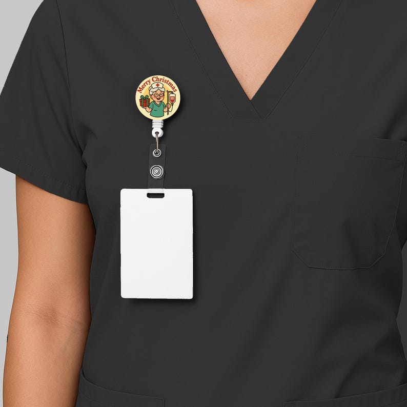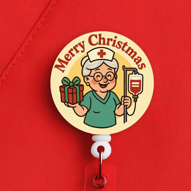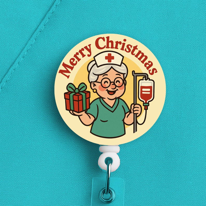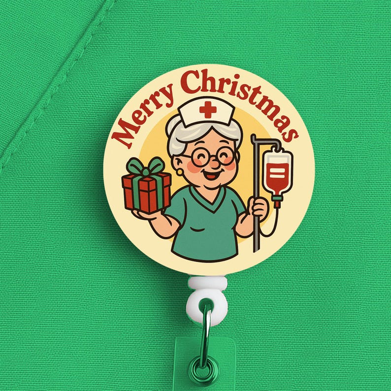 • A little nostalgia, a little cheer, and a whole lot of nurse energy. This Merry Christmas badge reel features a sweet, vintage-style nurse delivering both gifts and IVs—because let’s be honest, that’s the real holiday combo on the unit. Perfect for nurses who’ve been around long enough to remember paper charts, or newbies who appreciate classic nurse humor. It keeps your ID secure while spreading smiles faster than the sugar-free candy canes in the break room. A fun, festive pick for nurses of all ages.
