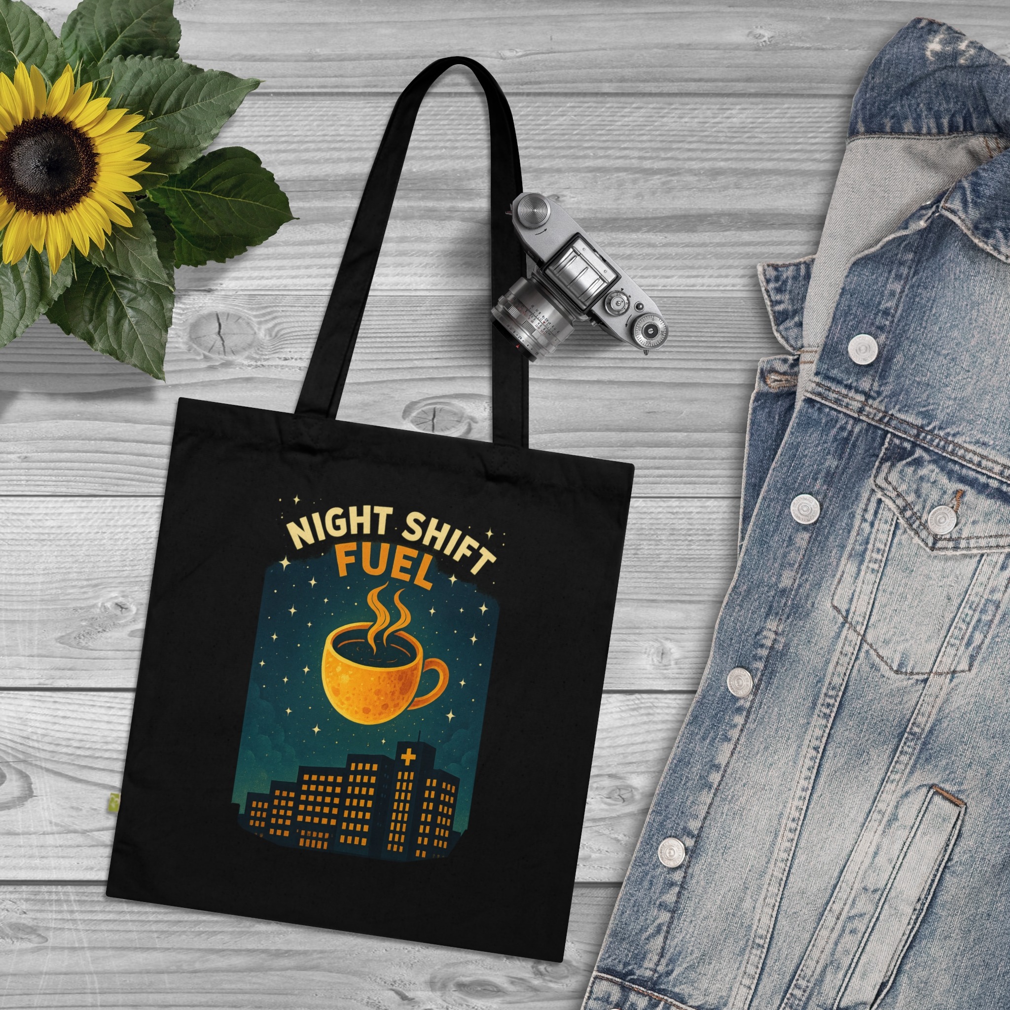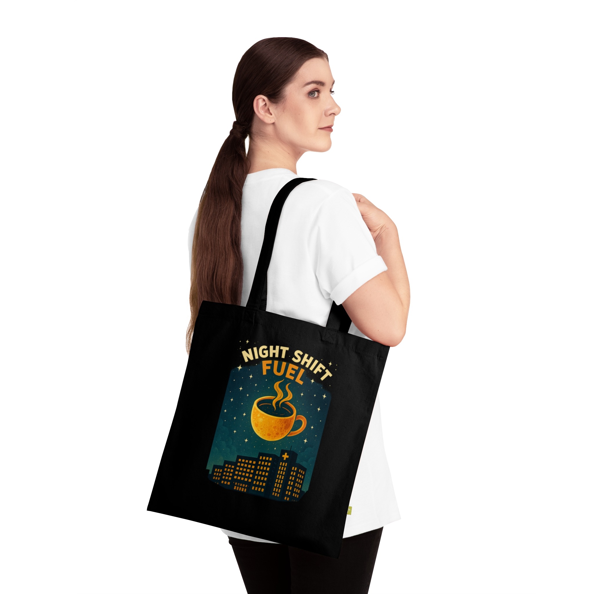 Introducing our Organic Cotton Tote Bag, a must-have accessory for eco-conscious individuals. This versatile tote adds a touch of charm to your daily routines, whether you’re heading to the market, the beach, or simply running errands. The vibrant design featuring a cozy coffee cup set against a night skyline captures the essence of nightshift hustle. Perfect for students, night owls, or anyone who appreciates a little caffeine boost in their lives! This tote is not only stylish but also sustainable, making it a thoughtful gift for Earth Day, back-to-school shopping, or any casual occasion. Carry it with pride and show off your commitment to sustainability while making a statement!