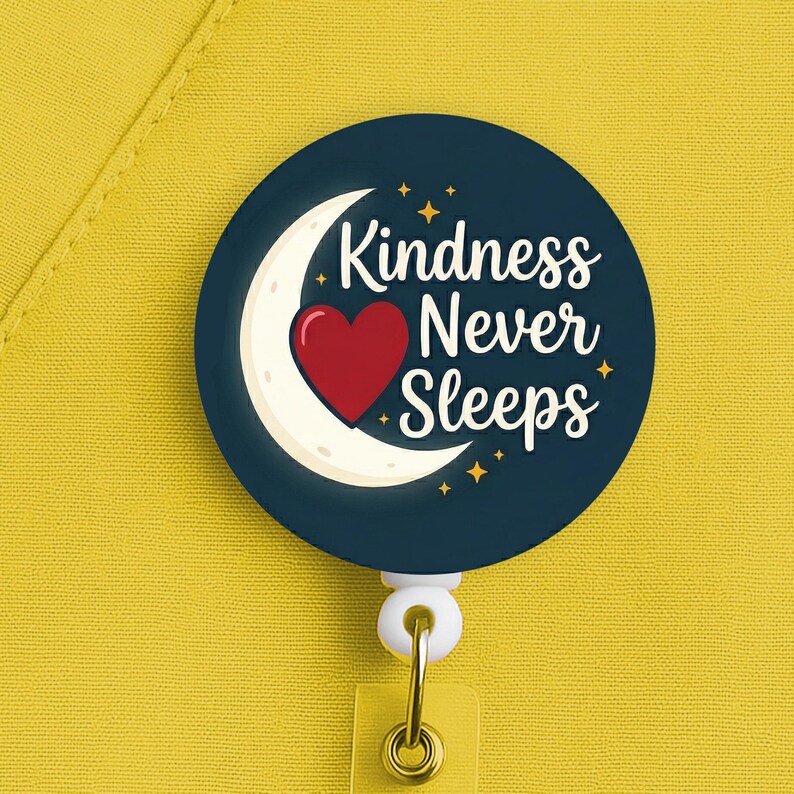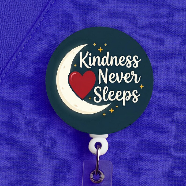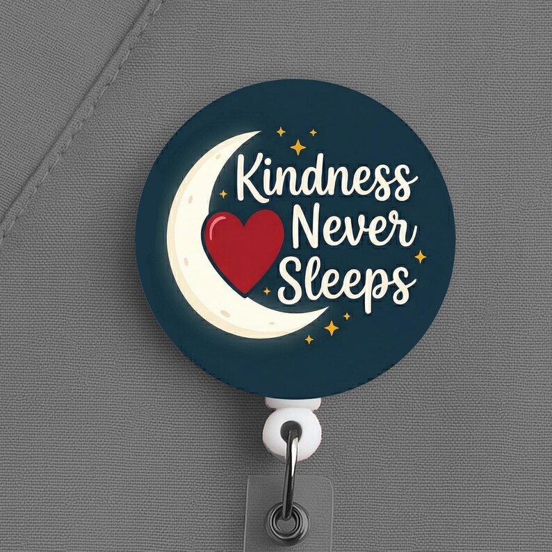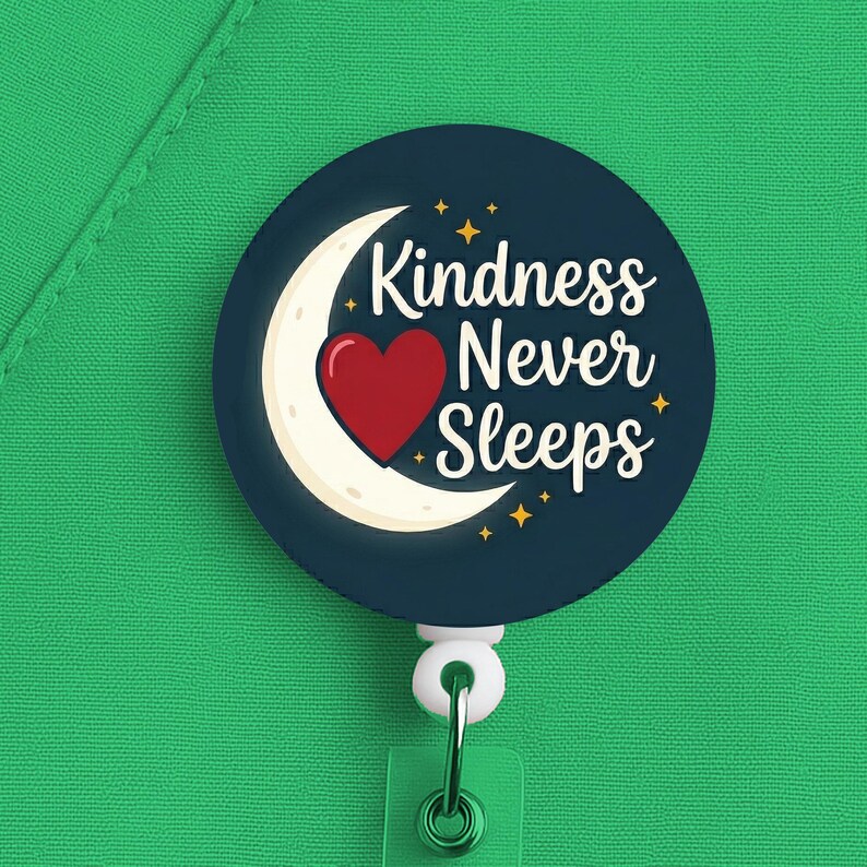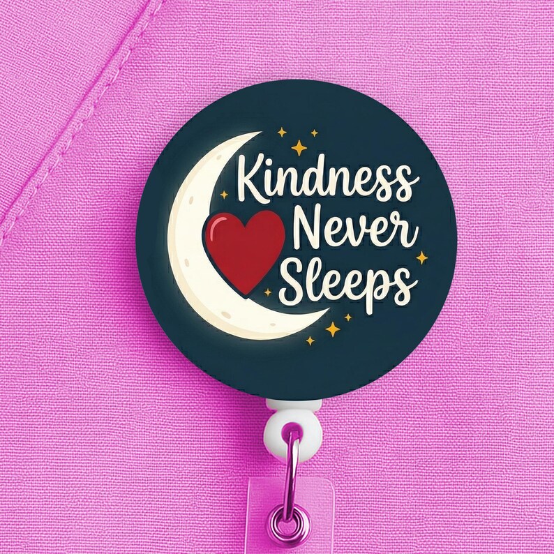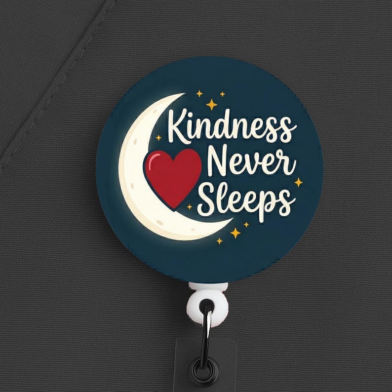 Night Shift Nurse Badge Reel, Kindness Never Sleeps, Nurse Gift