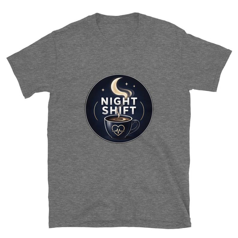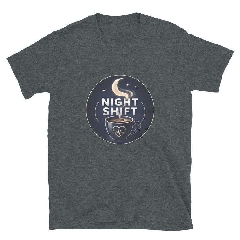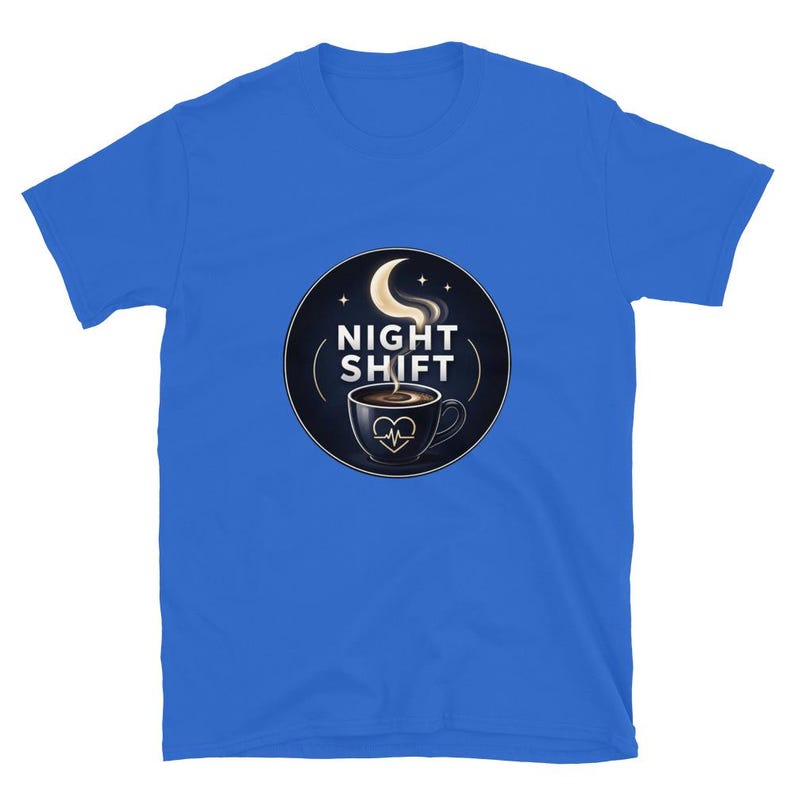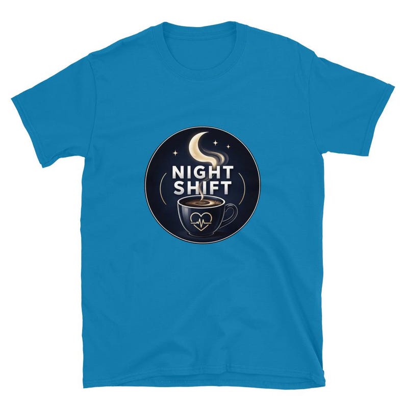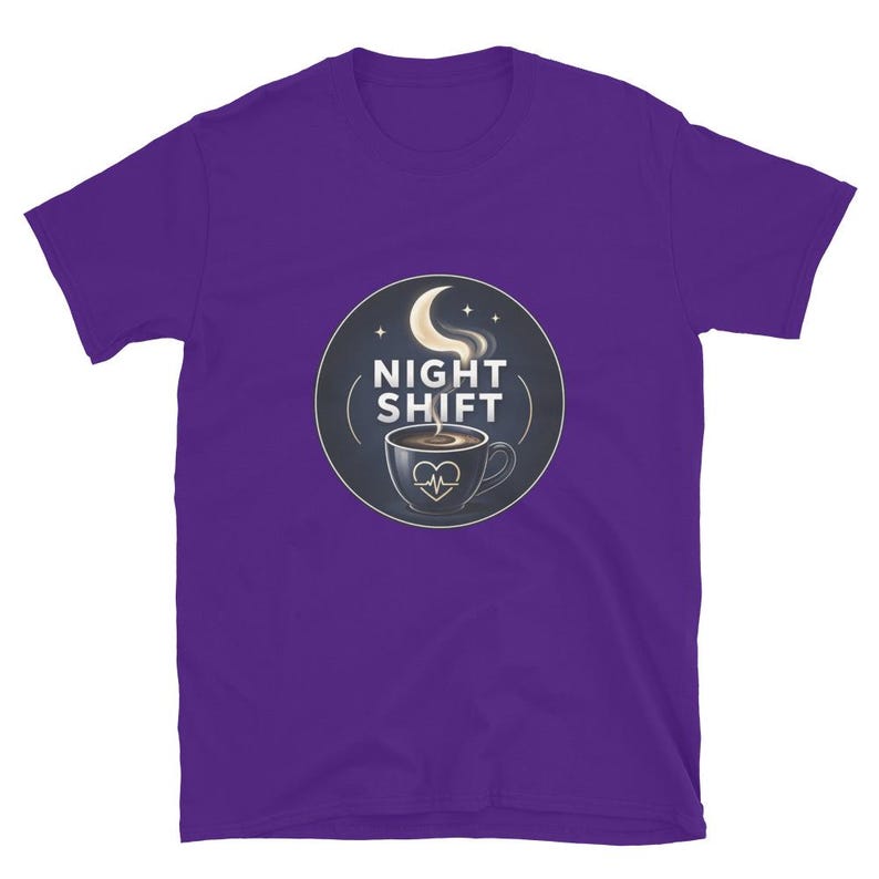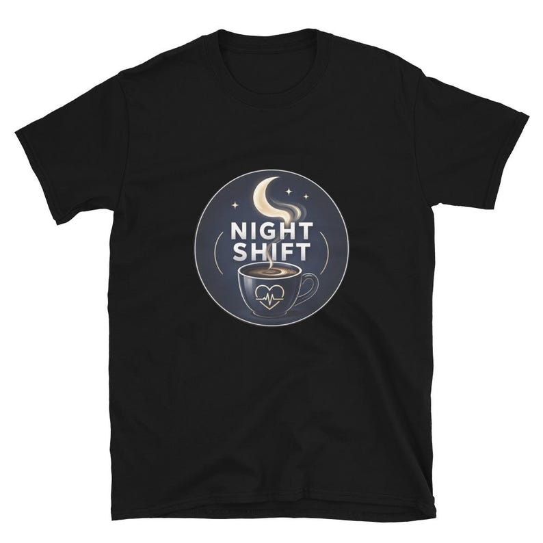 This night shift nurse shirt features a coffee cup and moon design with the phrase “Night Shift,” made for nurses, RNs, LPNs, CNAs, techs, and healthcare workers who know overnight survival starts with coffee and ends with pure stubbornness.