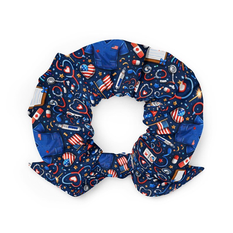 Night Shift Patriotic Nurse Stars Fireworks Medical Pattern Recycled Scrunchie