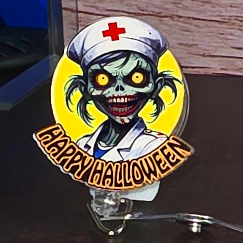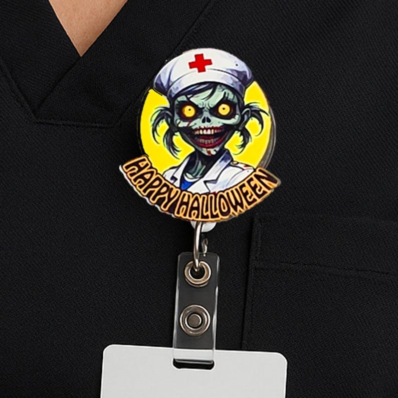 Nurse Badge Reel, Halloween Scary Nurse Zombie