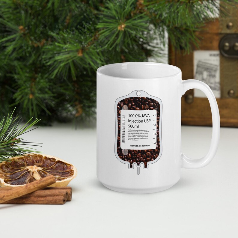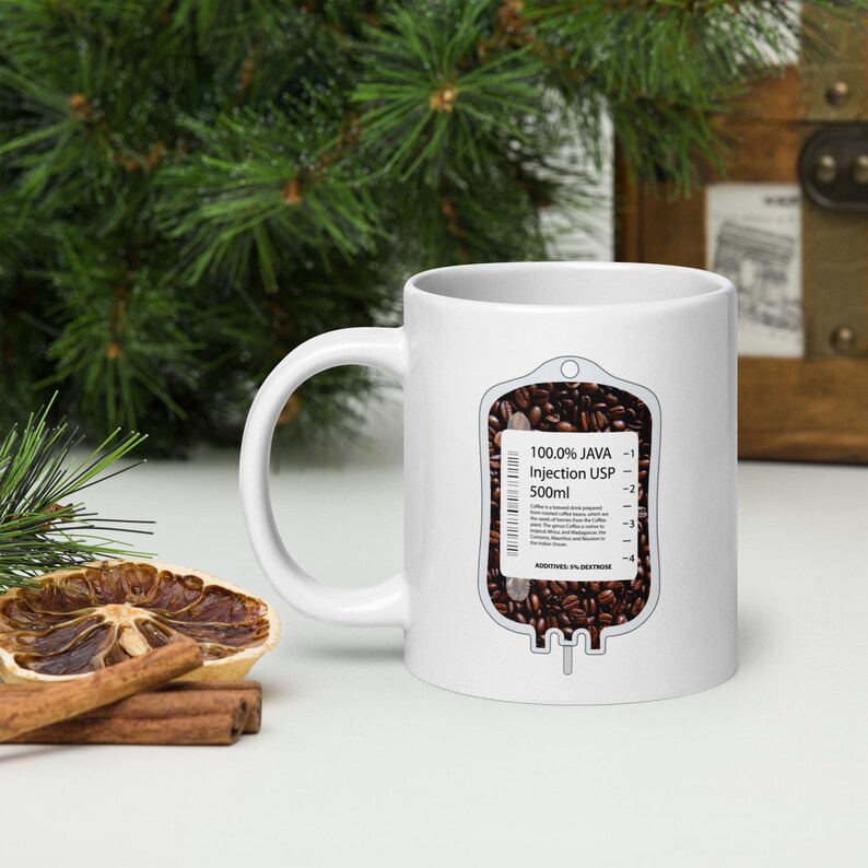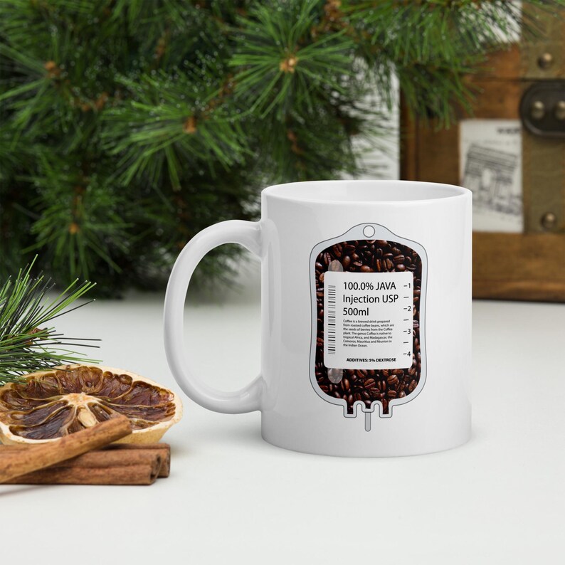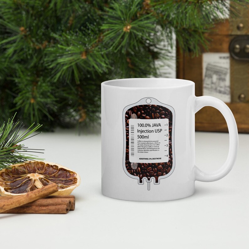 This nurse coffee mug features an IV bag filled with coffee beans and the phrase “100% Java Injection USP 500ml” in a bold medical humor design made for nurses, RNs, LPNs, CNAs, techs, and healthcare workers who understand that coffee is not a treat. It is infrastructure.