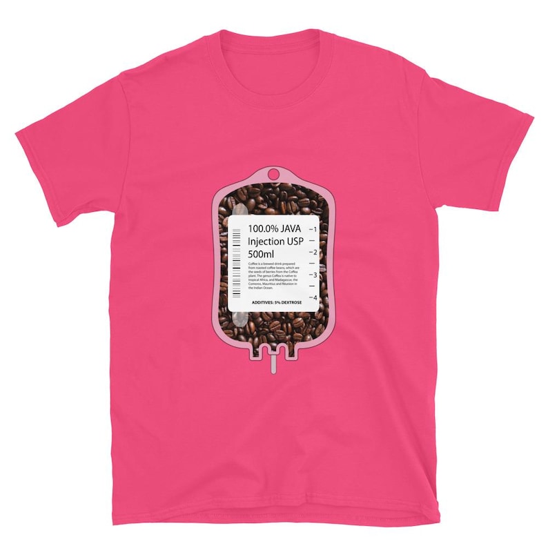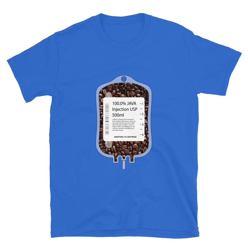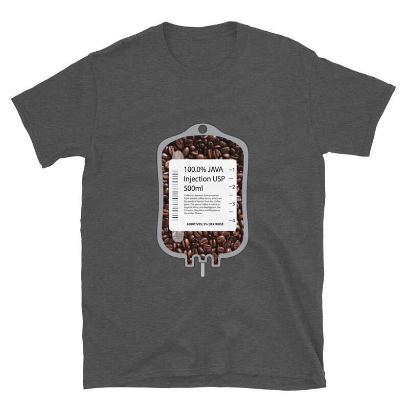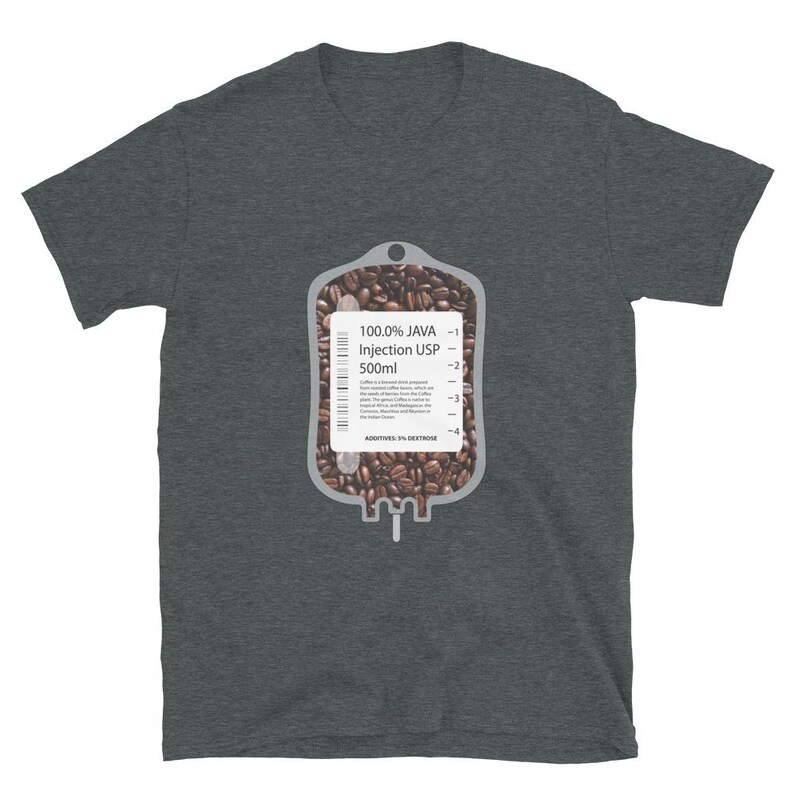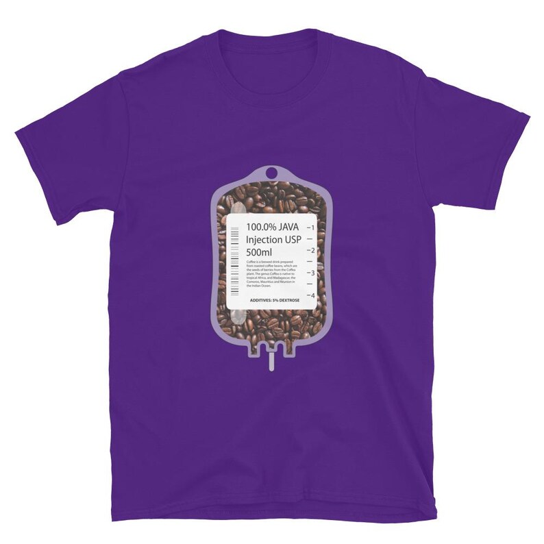 This nurse coffee shirt features an IV bag filled with coffee beans and the phrase “100% Java Injection USP 500ml” in a bold medical humor design made for nurses, RNs, LPNs, CNAs, techs, and healthcare workers who know caffeine is not optional. It is a fun off shift design with strong nurse humor and a clean, graphic look.