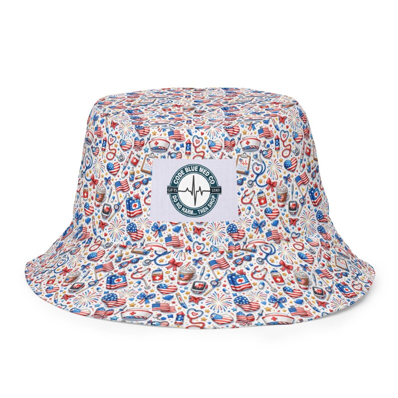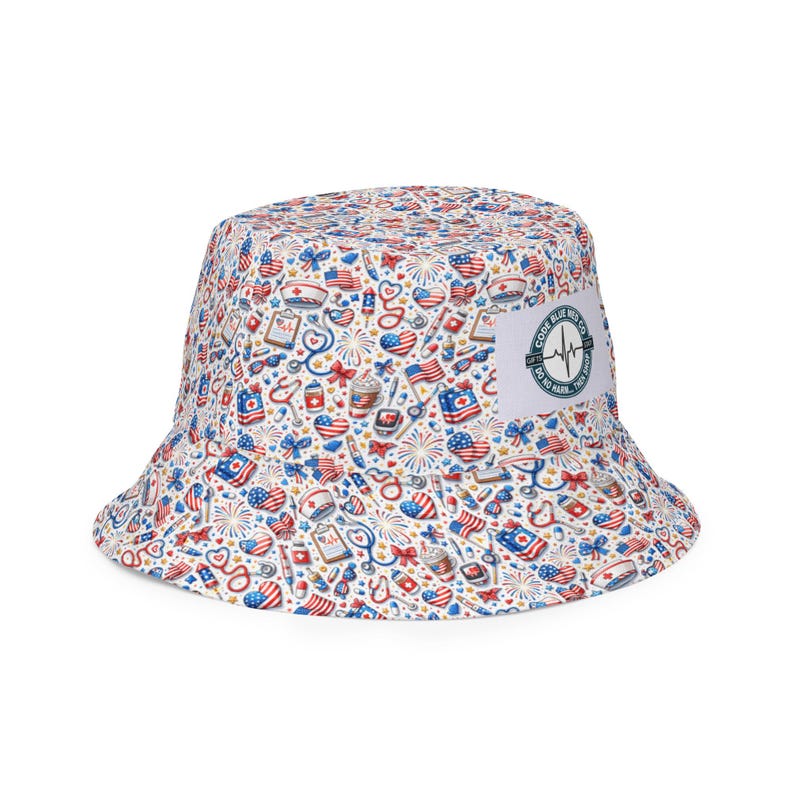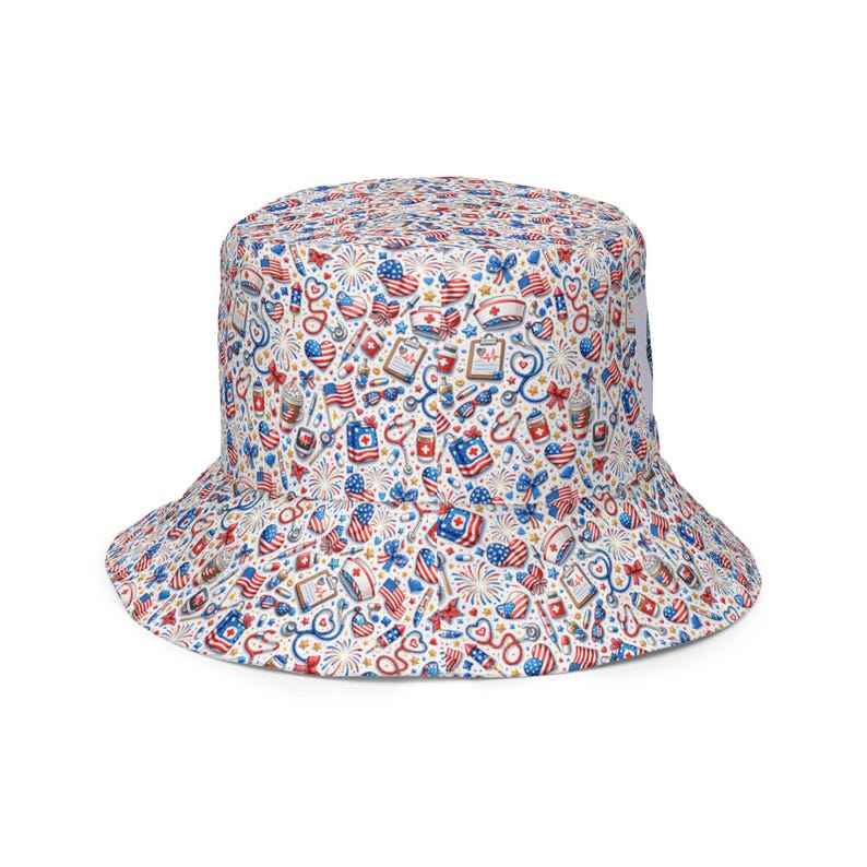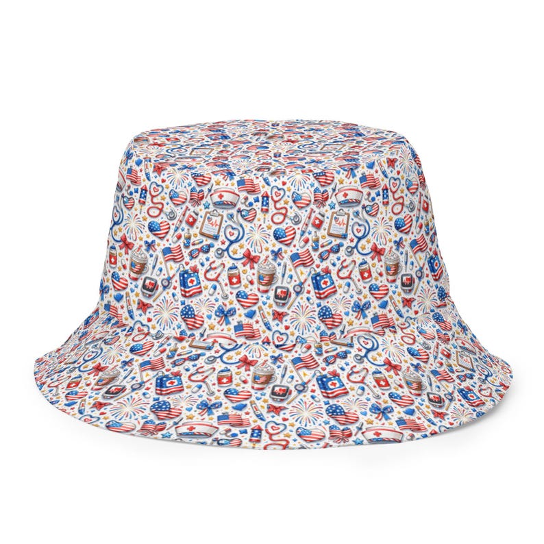 Patriotic Healthcare Nurse Scrubs USA Medical Celebration Pattern Reversible bucket hat