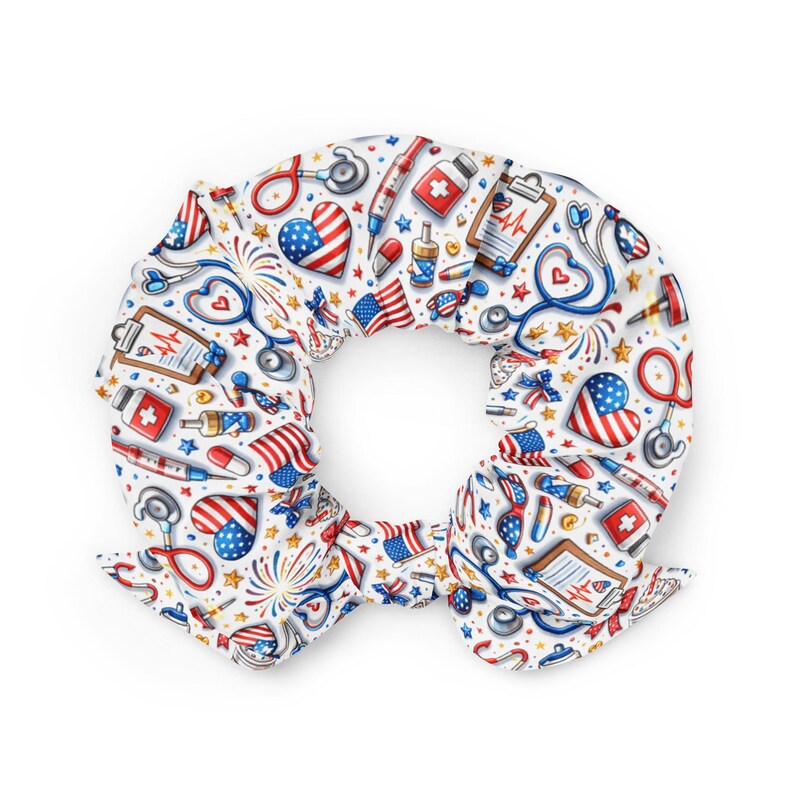 Be the first to review “Patriotic Nurse Medical Icons Fireworks USA Healthcare Pattern Recycled Scrunchie”