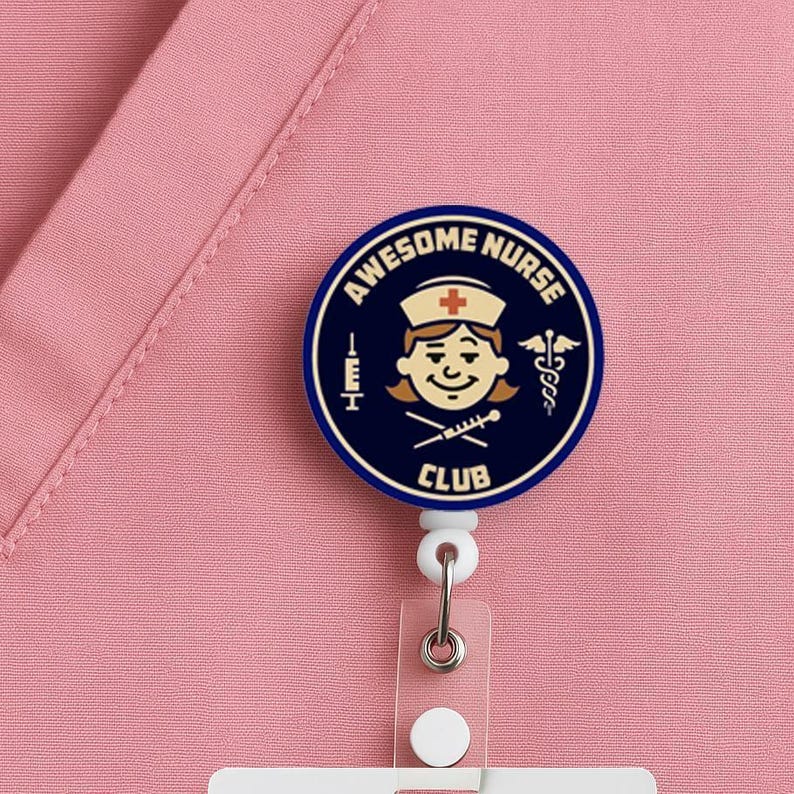 Show off your nurse pride with the Awesome Nurse Club Badge Reel — a retro-inspired design that’s perfect for RNs, CNAs, LPNs, medical assistants, and anyone in scrubs. Whether you’re scanning into work, running between patients, or just want a conversation starter, this badge reel keeps your ID handy and your style on point.