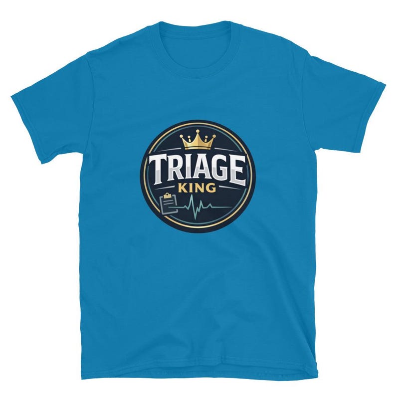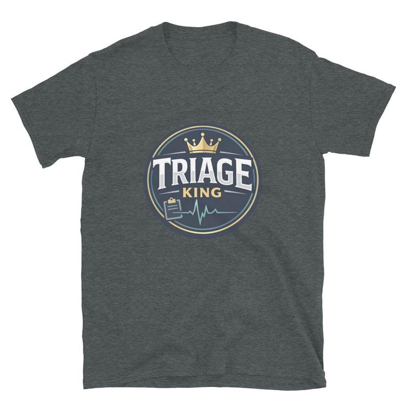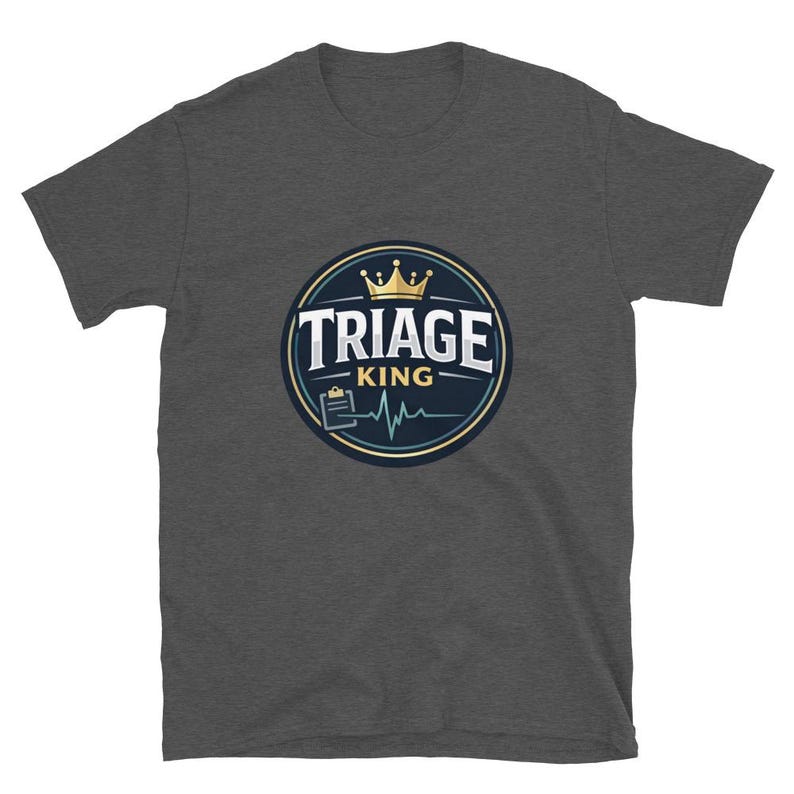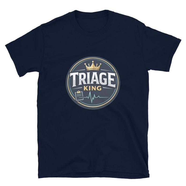 This triage nurse shirt features the phrase “Triage King” in a bold, polished design made for triage nurses, ER nurses, RNs, ED staff, and healthcare workers who think fast, prioritize hard, and stay in control when everything hits at once.