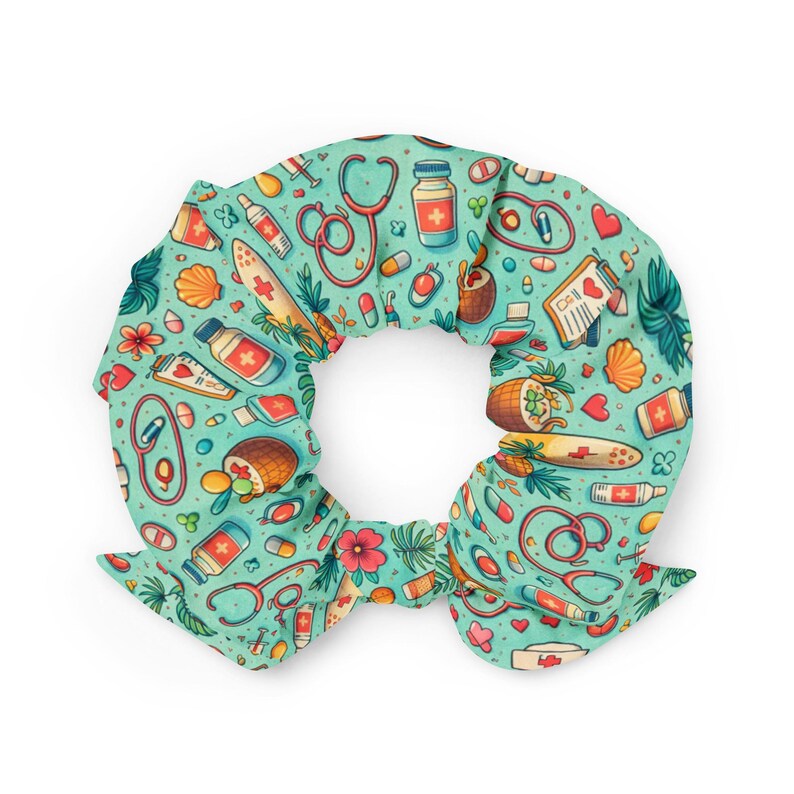 Tropical Surf Nurse Medical Pattern Summer Vacation Gift Recycled Scrunchie