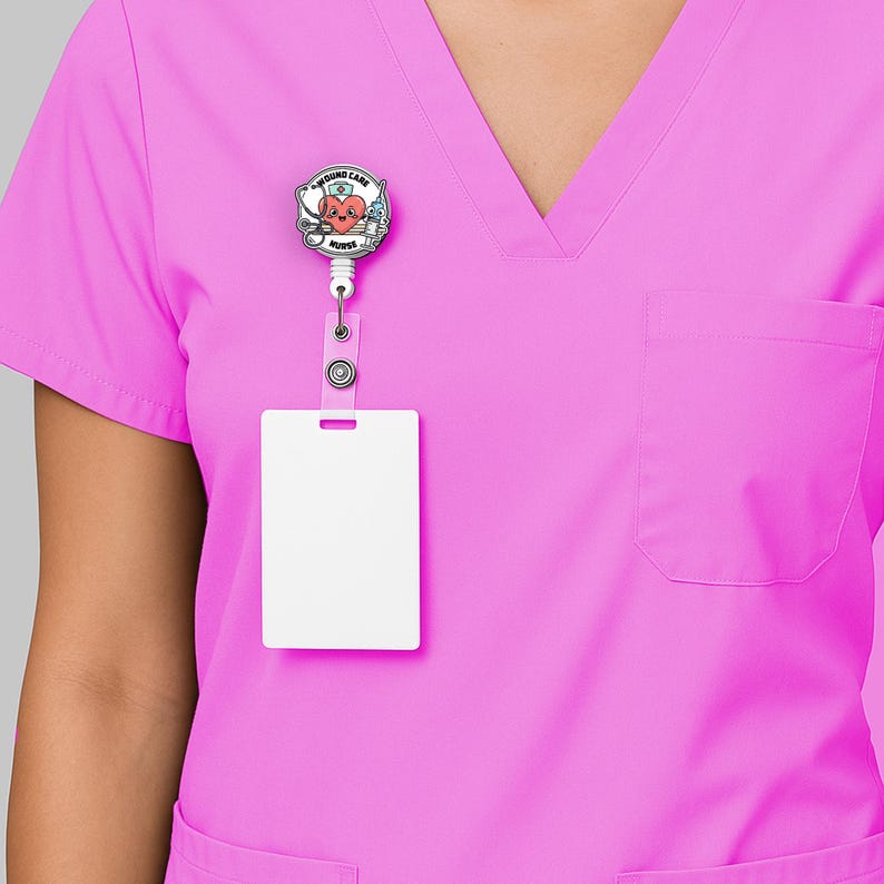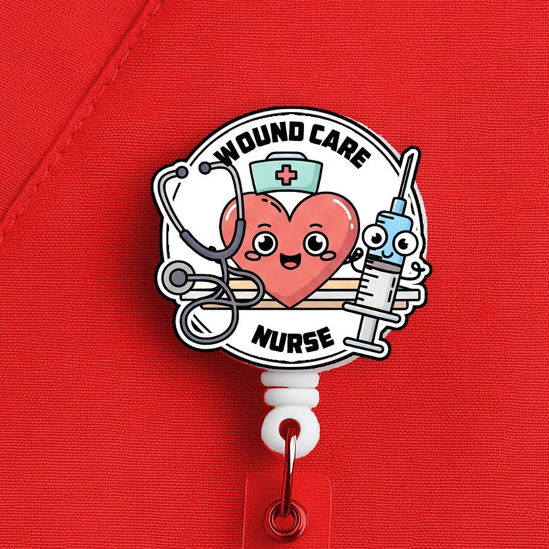 Celebrate your role as a wound care nurse with this cute and practical badge reel! Designed with a smiling heart, stethoscope, and syringe, this retractable ID holder is the perfect accessory for nurses, medical staff, and healthcare professionals.