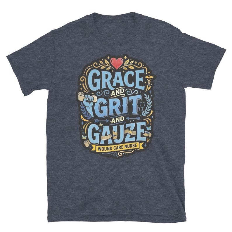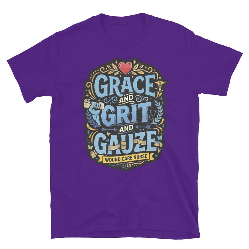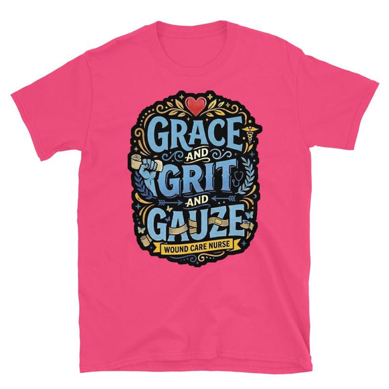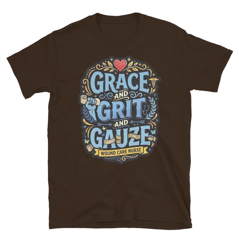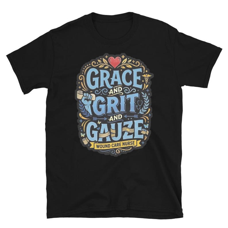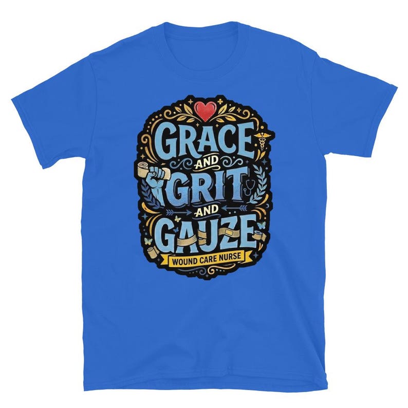 This wound care nurse shirt features the phrase “Grace and Grit and Gauze” in a bold medical design made for wound care nurses, RNs, LPNs, clinic staff, and healthcare workers who know the job takes equal parts heart, toughness, and skill. It has a strong nurse pride feel without getting cheesy or overdone.